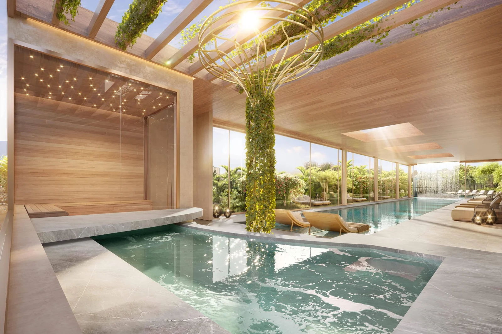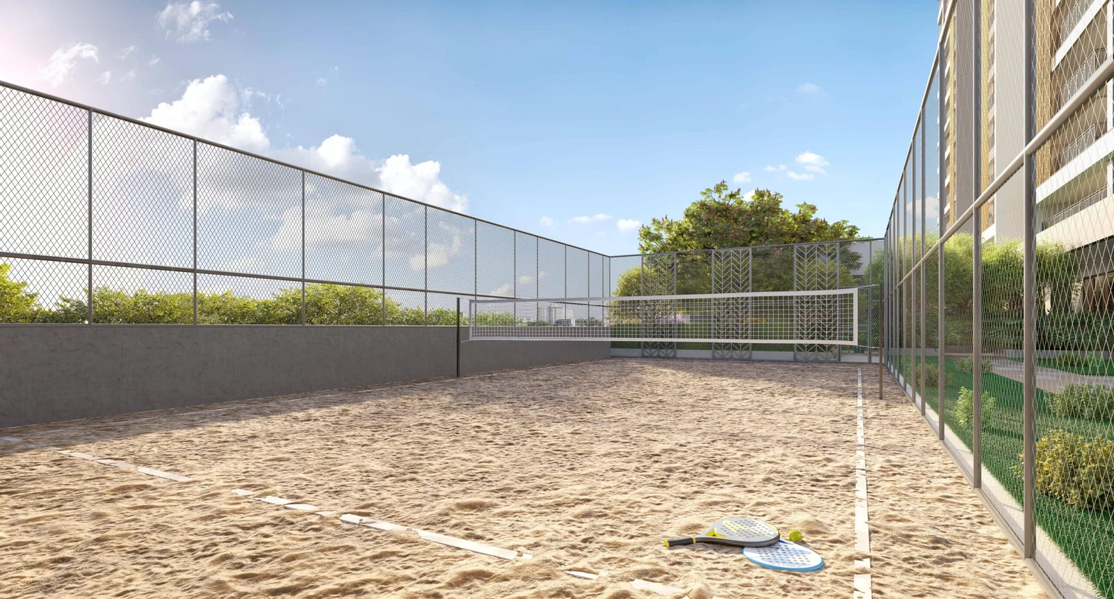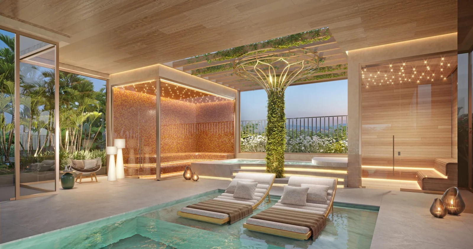 As áreas comuns elevam o conceito de bem-estar, com spa completo, piscinas coberta e descoberta, fitness, lounge bar, party lounge, espaço gourmet, churrasqueira, kids place, quadra de beach tennis, playground, pet place e áreas de contemplação integradas ao paisagismo. O projeto conta com certificação AQUA-HQE™ e o complexo possui certificação LEED for Neighborhood Development, reafirmando o compromisso com sustentabilidade e com a cidade do futuro.