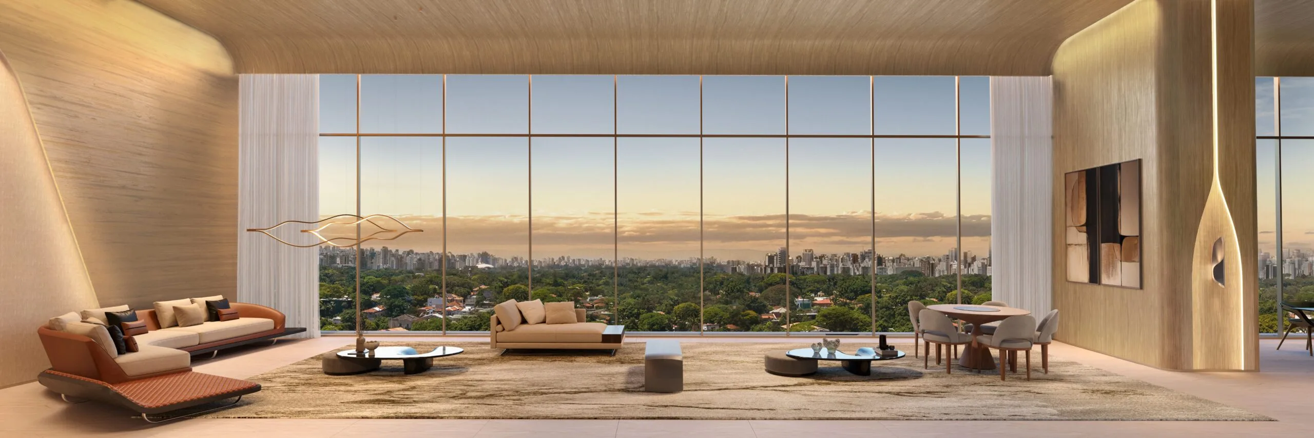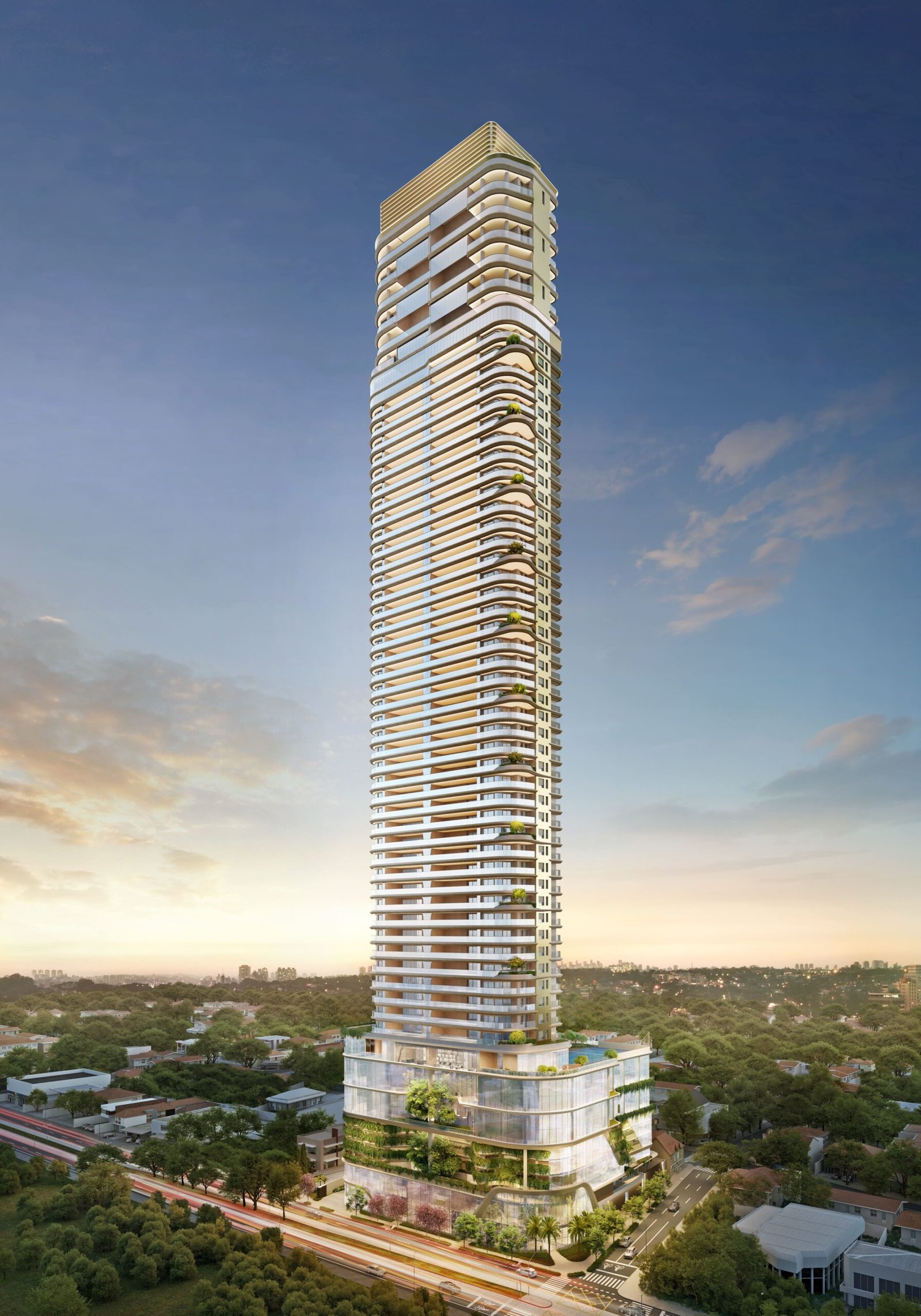 No 51º andar, o exclusivo Sky Wellness reúne piscina de raia coberta e climatizada, saunas, academia de última geração e terraço panorâmico com vista para o verde. As áreas comuns completam a experiência com lounge gourmet, spa, quadra de tênis, coworking e espaços de lazer cuidadosamente planejados.