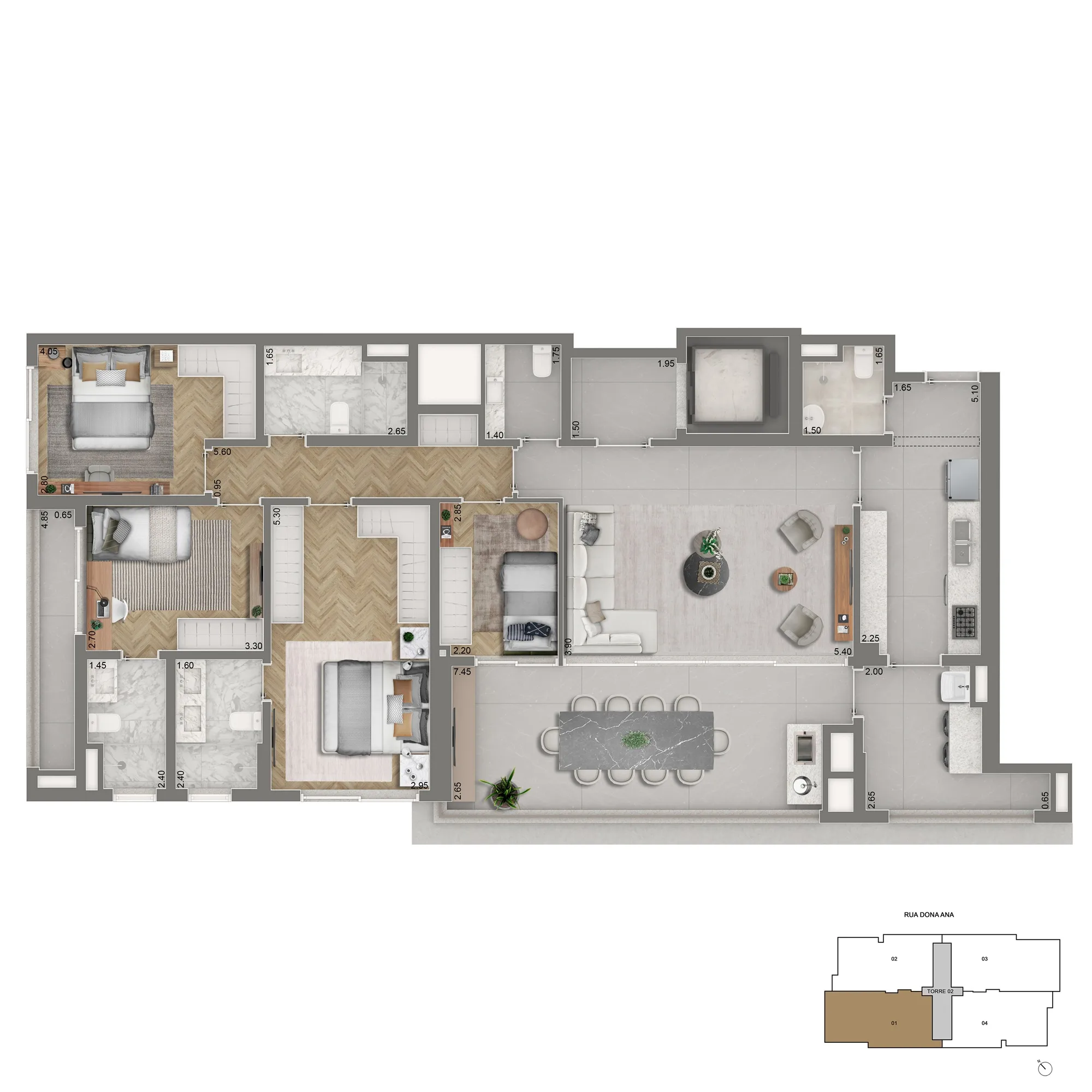 Com uma arquitetura imponente e referências estéticas internacionais, o empreendimento combina materiais nobres, proporções equilibradas e uma atmosfera pensada para oferecer bem-estar, silêncio e sofisticação em cada detalhe.